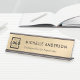 Eleve seu espaço de trabalho com este design de placa de nome de mesa dourada embebido, profissional e personalizável. Apresentando uma estética elegante e minimalista com tipografia clara para seu nome, título e logotipo da empresa, esta design projeta uma imagem de sofisticação e autoridade. As linhas limpas e a tela proeminente o tornam ideal para qualquer ambiente profissional, garantindo que você faça uma impressão polida.
