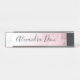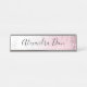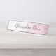 Placa de nome de mesa moderna e na moda, com textura de mármore rosa rosa-claro, cor rosa-claro, textura de mármore branco e letra elegante de caligrafia.