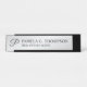 Faça sua empresa parecer mais profissional com uma placa moderna de preto e prata. Esta placa de nome da mesa apresenta um monograma no estilo de fonte preto moderno de script com nome e título no estilo de fonte de serif profissional preta em fundo prateado. Perfeito para agente imobiliário, consultor, contabilista e muitas outras profissões. Nota: Os detalhes da folha são simulados no trabalho de arte. Não será utilizada nenhuma folha de alumínio real no fazer deste produto.