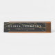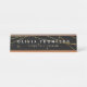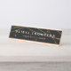 A placa de identificação da mesa Elegante apresenta a típica inscrição branca em um fundo preto rico, cromado por fios de falsos fios de folhas douradas. Personalize com seu nome e título ou nome comercial.