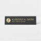 Placa de identificação do Elegante profissional preto e da mesa Dourada com monograma preto no elemento do círculo dourado com nome e profissão no estilo de fonte profissional dourada em fundo preto. Perfeito para um agente imobiliário, designer, advogado, consultor e muitas outras profissões. Nota: Os detalhes da folha são simulados no trabalho de arte. Não será utilizada nenhuma folha de alumínio real no fazer deste produto.