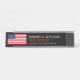 Uma placa de identificação feita sob encomenda da mesa do preto da bandeira americana orientada para toda a informação relevante a seus posição e lugar do negócio.