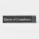 Uma placa conhecida da mesa para a "rainha da conformidade" em seu local de trabalho… um auditor, um gerente dos recursos humanos, um oficial da segurança de qualidade ou um gerente.