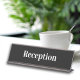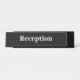 Uma simples placa de nome de mesa profissional para a recepção onde você recebe visitantes ao seu escritório e os direciona para uma sala de espera em um escritório de Medicina, escritório de advocacia ou agência imobiliária.