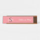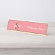 Você pode personalizar esta placa de mesa com seu nome inicial. Colorido em fundo rosado e texto personalizado preto e branco.