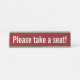 Este design minimalista apresenta a mensagem "Por favor, sente-se!" em texto branco sobre fundo de cor vermelha. Esta poderia ser utilizada numa sala de reuniões para informar os clientes ou visitantes de que serão recebidos em breve e de que deverão, entretanto, ter assento.
