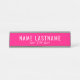 Personalize esta placa de nome da mesa cor-de-rosa brilhante, brilhante e Na moda minimalista moderna, com fontes brancas.