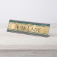 Esta placa de nome de Dama do Chefe personalizável tem um tom verde teal em fundo listrado com cobertura floral de ouro. Há uma área central de aparência de folha de ouro para mostrar o texto preto que você pode personalizar com um nome ou outras palavras.