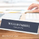 Esta placa de nome clássico cria uma aparência profissional no escritório. Sua simples design combina as teclas tradicionais e modernas para uma estética sofisticada e minimalista. Personalize o modelo com seu nome e cargo. Este design elegante é perfeito para muitas profissões diferentes, incluindo papéis de empresa e executivo, consultores de negócios, empresários, proprietários de pequenas empresas, profissões legais e muito mais. Cores impressas: azul-preto e branco.