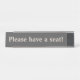 Este design tradicional mostra a mensagem "Por favor, sente-se!". Esta poderia ser utilizada numa área de recepção para informar os visitantes, clientes ou clientes de que serão assistidos em breve e de que deverão, entretanto, ter assento.