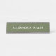 Faça uma declaração com esta placa personalizada de nome de mesa com uma fonte moderna de sans serif branca em um fundo verde-oliva. Personalize com seu nome ou nome comercial um toque profissional e na moda para qualquer espaço de trabalho.