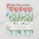 Mande a sua família e amigos este elegante cartão floral para que saibam o seu novo endereço. Este design apresenta uma linha de tulipas cor-de-rosa florescentes primavera num fundo azul. No centro, em uma escrita decorativa a preto, lê-se "Nós nos movemos" e abaixo está o nome e endereço da sua família para personalizar. A parte de trás do cartão tem uma mensagem e uma assinatura personalizadas. Projetado apenas para você por Tim Coffey.