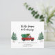 Versão do Orçamento Árvore de Natal do Caminhão Vermelho Novo Anúncio de Movimentação de Casa... A frente de nossa estação de baratos, nova carta de endereço, apresenta um caminhão vermelho-aquarela vintage transportando uma enorme árvore de Natal verde conduzindo sobre estantes de pinheiros abaixo da saudação manuscrita: "Esta é a estação a ser movida." O texto adicional na frente do cartão diz: "Feliz Natal da nossa nova casa" juntamente com o seu nome e novo endereço logo abaixo. Na parte de trás estão todas as informações que sua família e amigos precisarão para manter contato. Todo o texto na frente e na parte traseira da placa pode ser revisado muito facilmente no modelo de personalização.
