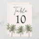 Elevem sua decoração de casamento tropical ou de destino com esses cartões elegantes de mesas de palmeiras, com numeração ousada com três palmeiras mostradas abaixo em um fundo de marfim. Perfeito para a praia, litoral ou para o exterior, esses números de mesas minimalistas ajudam os hóspedes a encontrar seus assentos enquanto adicionam um toque de elegância natural. Personalize cada placa individualmente e selecione o tamanho ideal — 5"x7" ou outra opção para ajustado das configurações de mesa. Projetados para coordenar com a nossa coleção de casamento da Palm Tree Minimal, estas cartas de mesa criam uma experiência coesa e na moda de recepção.