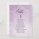 Ajude seus convidados a encontrar sua mesa com este elegante cartão moderno de assentos com nomes de convidados. Design com um requintado fundo de lavagem a aquarela de matizes roxas. Cartões duplos de lado para que os convidados possam procurar seus nomes, tanto na frente como no verso, se você quiser usá-los depois em um monitor suspenso. Espaço livre ao redor, dando-lhe a liberdade de usar clipes ou furos de perfuração para monitores suspensos, ou usar o suporte/quadro da mesa. Elementos modernos de caligrafia escrita à mão. Parte da nossa coleção "Pastel Floral Púrpura e Rosa" com uma variedade de produtos de coordenação disponíveis, incluindo cartões de números de tabela e cartões de menu.