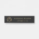 O moderno sinal elegante da porta do advogado apresenta um ícone de ouro da escala de justiça em um jardim preto e o nome/ título na frente.
