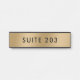 Personalize este Sinal de Porta Numérica do Suite Simples de Na moda moderno projetado com fontes pretas com um impressão de fundo dourado falso. Note que esta é uma impressão de cor e não é uma folha de ouro de metal. A placa tem acabamento de metal preto, você pode mudar isso para duas outras opções, para acabamento de metal prateado ou rosa.