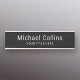 Placa de nome personalizada com seu nome e título em um plano de fundo preto
