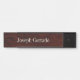 Madeira Preta-Escura Colorida Olhando Parede Parede Prendendo Placa de Portas Nominal da Porta com a Inscrição de marfim mostrada com Quadro Preto.
