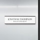 Faça sua empresa parecer mais profissional com uma placa profissional de nome preto e branco. Esta placa de nome pendente apresenta o nome e o título no estilo de fonte de serif profissional preta em fundo branco. Perfeito para agente imobiliário, consultor, contabilista, gestor, professor e muitas outras profissões.