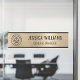 Elevate your office or workspace with this sleek door sign design, featuring a sophisticated brushed gold metallic background that radiates professionalism. The design incorporates a prominent space for your custom logo on the left, perfectly balanced with a clear and modern sans-serif font for the name and title. Framed by a slim, dark border, this design offers a refined and contemporary aesthetic, ensuring a distinguished presentation for any professional setting.