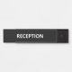 Sinal de porta Simples de RECEPÇÃO Limpo e profissional em design preto e branco clássico. Perfeito para escritórios, hospitais, lojas de varejo, clínicas e qualquer local de negócios que exija acesso restrito. Sinalização simples e clara que comunica efetivamente restrições de acesso a visitantes e funcionarios.