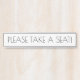 Este design elegante apresenta a mensagem "POR FAVOR, SENTE-SE!". Este sistema poderia ser utilizado numa sala de espera ou numa área de lugares para informar os clientes, visitantes ou clientes de que serão assistidos em breve e de que deverão, entretanto, ocupar um lugar.
