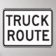 Este design é um sinal de rota de caminhão. A placa de trânsito é branca e em preto está escrito rota de caminhão. Este design de sinal de rota de caminhão fica ótimo neste Poster