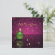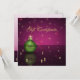 Glamorosa ilustração de Natal com uma bola de Natal verde com um roteiro elegante de ouro, Mereço de Natal e pérolas de ouro sobre um fundo púrpura com estrelas cintilantes.