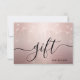 O moderno elegante rosa dourado glitter goteja de beleza spa cabelo estilista salão cartão de presente. Tipografia de script preto em chic e moda. Personalize com seu nome e detalhes comerciais. Ótima e eterno opção para cabeleireiro, salão de cabelos, salão de beleza, salão de unhas, maquiagem ou profissional de saúde e bem-estar.