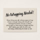 Se você estiver hospedando um chá de exibição sem presentes para uma noiva para ser, este cartão simples e divertido pode ser a escolha para você. Usando uma fonte elegante de script, adicionei primeiro um cabeçalho que dizia "No Wrapping Neanced!" na frente, e "To" e "From" para o lado da etiqueta de presente. O campo de modelo foi criado para oferecer instruções aos convidados que não embrulhassem o seu presente; por favor, sintam-se livres para alterar a redação da forma que quiserem. Há muitos alternativos populares neste texto, se você quiser uma mudança. Todas as fontes e cores podem ser modificadas conforme você vê o ajustado.