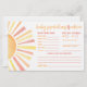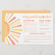 Esta placa horizontal de Predicções e Conselhos para Bebês apresenta um alegre design com temática solar com raios quentes em tons clássicos amarelo, laranja e vermelho, dando-lhe uma vibração ensolarada e divertida. Do lado esquerdo, um sol ousado adiciona um sotaque brilhante, enquanto o lado direito convida os convidados a adivinhar os detalhes de chegada do bebê — como data, hora, peso, olhos e cor de cabelo, e a quem eles se assemelharão. Na parte inferior, há um ponto para os convidados oferecerem um pouco de conselho e assinarem o seu nome, fazer-o um bem-estar doce e pessoal para os futuros pais. A parte traseira apresenta um fundo laranja sólido, mas você pode alterá-lo para qualquer cor para corresponder ao seu tema de chá. Totalmente personalizável e divertido para os convidados, este cartão adiciona um toque atencioso à sua celebração.
