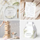 Cartão de previsão de Chá de fraldas de roscas brancas. Este na moda e elegante Convite para Chás de fraldas apresenta lindas rosas brancas pintadas manualmente com cores aquáticas. Localize itens correspondentes na Coleção de Rosas Brancas Roxas.