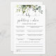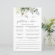 Cartão de previsão de Chá de fraldas Floral Eucalyptus. Este Convite para na moda e Chá de fraldas elegante apresenta uma linda aquarela pintada manualmente Eucalyptus Floral Greenery. Encontre itens correspondentes na Coleção de Verduras Florais Eucalyptus.