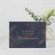 Design de Casamento de Borda Floral de Folha Azul e Rosa marinho Gold com flores desenhadas à mão, Folhas e fundo de aquarela. Um chic e um moderno Procure por um outono ou casamento no inverno, com paleta de cores ousadas: azul Marinho e detalhes de folha falsa ouro rosa. Elementos Florais desenhados à mão, moderna letra de moderna de moda - Casamento personalizado Será a minha carta de proposta da Bridesmaid! Veja meu compro para ver a suíte de casamento inteira para este design!