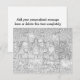 Cansado das mesmas cartas chatas? Adicione sua própria foto e mensagem personalizada para criar um cartão de saudação de quebra-cabeça personalizado de 12 peças para seu amigo ou amado! Basta cortar ao longo das linhas da quebra-cabeça e colocá-las no envelope que as acompanha. O receptor terá que montar o quebra-cabeça para ver sua saudação! **NOTA: ESTE NÃO É UM QUEBRA-CABEÇA REAL E AS peças NÃO estão perfuradas - você precisará cortá-las manualmente ou deixar o convite intacto.** Este produto está disponível em 6, 9, 12, 30 e 63 peças. **Este design também está disponível em outras opções. Copie e cole este url no browser para ver a nossa variedade de placas de saudação de quebra-cabeça personalizáveis: http://www.zazzle.com/malibuitalian*/puzzle+gift