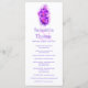 Flor de orquídea de cor aquosa estilizada, pintada de dois lados, com pétalas em forma de coração, em roxo e floral de arte, num programa de casamento branco. Parte do conjunto de papéis de carta de casamentos de orquídeas estilizadas com coloração aquosa de arte. Bonito tom roxo e branco. Edite este programa de casamento com seu próprio nome, datas, texto da cerimônia, assistentes de festa de casamento e obrigados. Um programa simples, mas elegante, simplesmente substitua o texto de amostra por seus detalhes de casamento. Programa moderno e romântico de cerimônias de casamento. Pintura aquosa e design por Sarah Trett.
