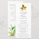 Flor de orquídea Oncidium Leucochilum pintada de dois lados em um programa de casamento branco. Parte do conjunto de papéis de carta de casamentos de orquídeas de cor aquática de arte. verde limão bonito, tonalidades de cinza rosa, vermelha e branca. Edite este programa de casamento com seu próprio nome, datas, texto da cerimônia, assistentes de festa de casamento e obrigados. Um programa simples, mas elegante, simplesmente substitua o texto de amostra por seus detalhes de casamento. Programa moderno e romântico de cerimônias de casamento. Pintura aquosa de arte e design por Sarah Trett.