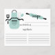 Cartões de receitas de cozinha divertidos e retrorados com um avental de bolinhas com ferramentas de cozinha e pino de rolagem. A frente do nosso cartão de receita oferece espaço para um título de receita, da cozinha e do espaço de ingredientes. Sacudir nosso cartão de receita para ver nossa linha de volta para as instruções da receita. Visite nosso compro para convites de chá de panela correspondentes Disponíveis em nosso compro em uma grande variedade de cores populares do chá de casamento. Chá de panela perfeito para o estoque do chá de panela da cozinha.