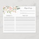 Receba cartões perfeitos para seus convidados de casamento/chá de panela completarem para a noiva ser. Design simples com flores cor-de-rosa de cereja e folhagem verde de cor-de-água.