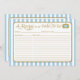 Cartões de receitas de chá de panela em azul claro e ouro. Uma atividade útil de chá de casamento em listras azuis e brancas pastel com sotaque de falso dourado e texto dourado. Há espaço para anotações nas costas também!