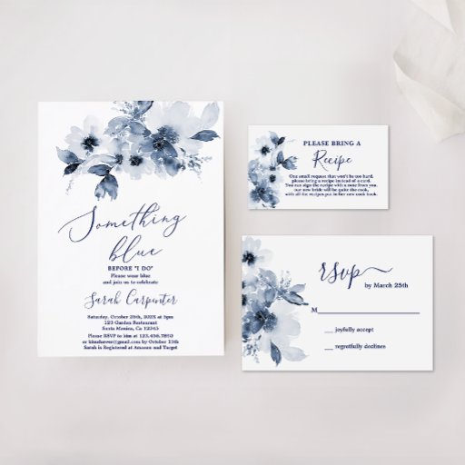 Cartão de receita de Chá de panela floral azul