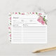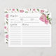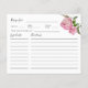 Cartão de receita rústico para o seu chá de panela de tema floral com ilustração aquosa de peônia cor-de-rosa com verde. Peça aos seus hóspedes para preencherem este cartão de receita e levá-los à noiva ou ao chá de casamento. Perfeito para primavera ou chá de verão.