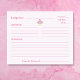 Um Cartão de Receita rosa com cupcake para compartilhar suas receitas favoritas com amigos e familiares ou para um chá de panela!