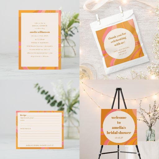 Boho Yellow Orange Pink Marble Bridal Shower Criado por Opal Ellery