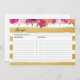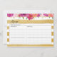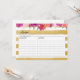 Placa de recebimento com fundo de cor d'água de design floral rosa e listras douradas.