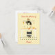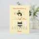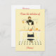 Ilustração antiga de uma mulher em avental preparando guloseimas em sua antiga cozinha branca e negra. Cartão de recebimento. Retro. Preto, branco, creme, vermelho. Personalize.