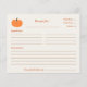 Um Cartão de Receita com uma abóbora em cor laranja para compartilhar suas receitas favoritas com amigos e familiares para o Dia das Bruxas, Ação de Graças ou para usar em um chá de panela!