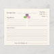 Um Cartão de Receita amarelo-claro e roxo com alguns macarões franceses coloridos para compartilhar suas receitas de doces favoritos com amigos e familiares ou para usar em um chá de panela!