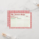Cheques vermelhos e pequenas posições... há muito charme de 50-noventa com estes Cartões de Receita. Estes cartões são a inserção perfeita para o convite correspondente do Nifty 50. Faça amigos preencherem sua receita favorita e a traga para a festa para compartilhar.